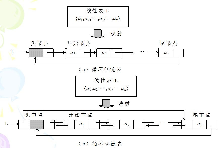 循环链表:一般包括循环循环链表和循环循环链表,如下图所示