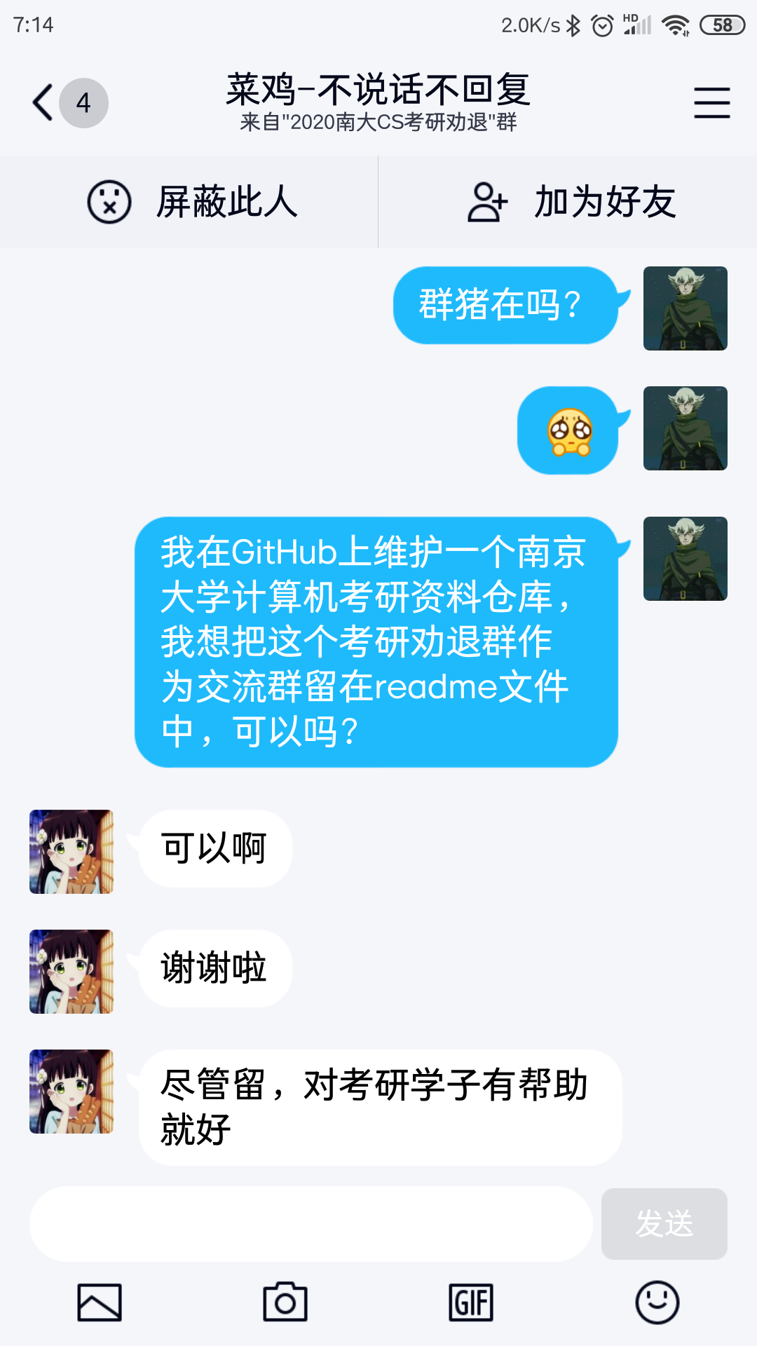 你可以在QQ找到的计算机/考研/南京大学交流群我都加过,基本上没什么卵用(建议大家不要在这个上面花费太多的时间,当然了,你想没事水水群的话另说)。