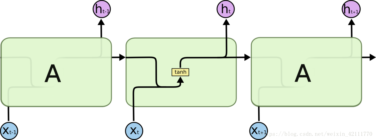 标准的RNN结构都具有一种重复神经网络模块的链式形式,一般是一个tanh层进行重复的学习(如上图左边图),而在LSTM中(上图右边图),重复的模块中有四个特殊的结构。贯穿在图上方的水平线为细胞状态(cell),黄色的矩阵是学习得到的神经网络层,粉色的圆圈表示运算操作,黑色的箭头表示向量的传输,整体看来,不仅仅是h在随着时间流动,细胞状态c也在随着时间流动,细胞状态c代表着长期记忆。