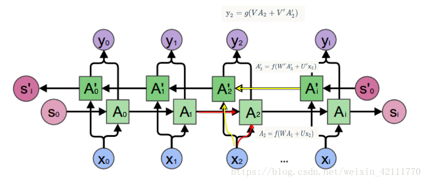 双向RNN由两个普通的RNN所组成,一个正向的RNN,利用过去的信息,一个逆序的RNN,利用未来的信息,这样在时刻t,既能够使用t-1时刻的信息,又能够利用到t+1时刻的信息。一般来说,由于双向LSTM能够同时利用过去时刻和未来时刻的信息,会比单向LSTM最终的预测更加准确。下图为双向LSTM的结构。