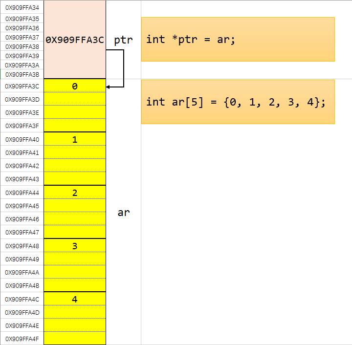 | int ar[5]; | int [5] | ar | int (*)[5] |