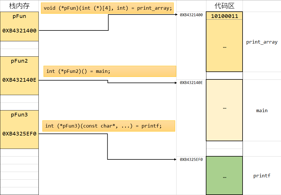 | int (*pFun) (int a1, int a2) | int (*) (int , int) | pFun |