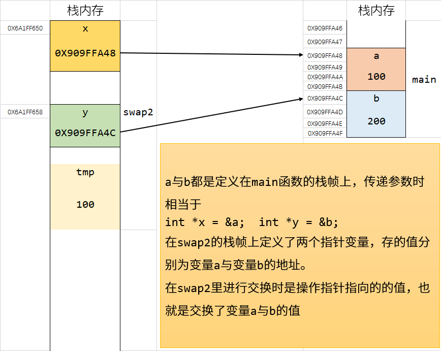 上面两个交换函数第一个是无法成功交换两个数值的,第二个可以成功交换,要理解这种现象产生的原因,需要先来看一个概念: