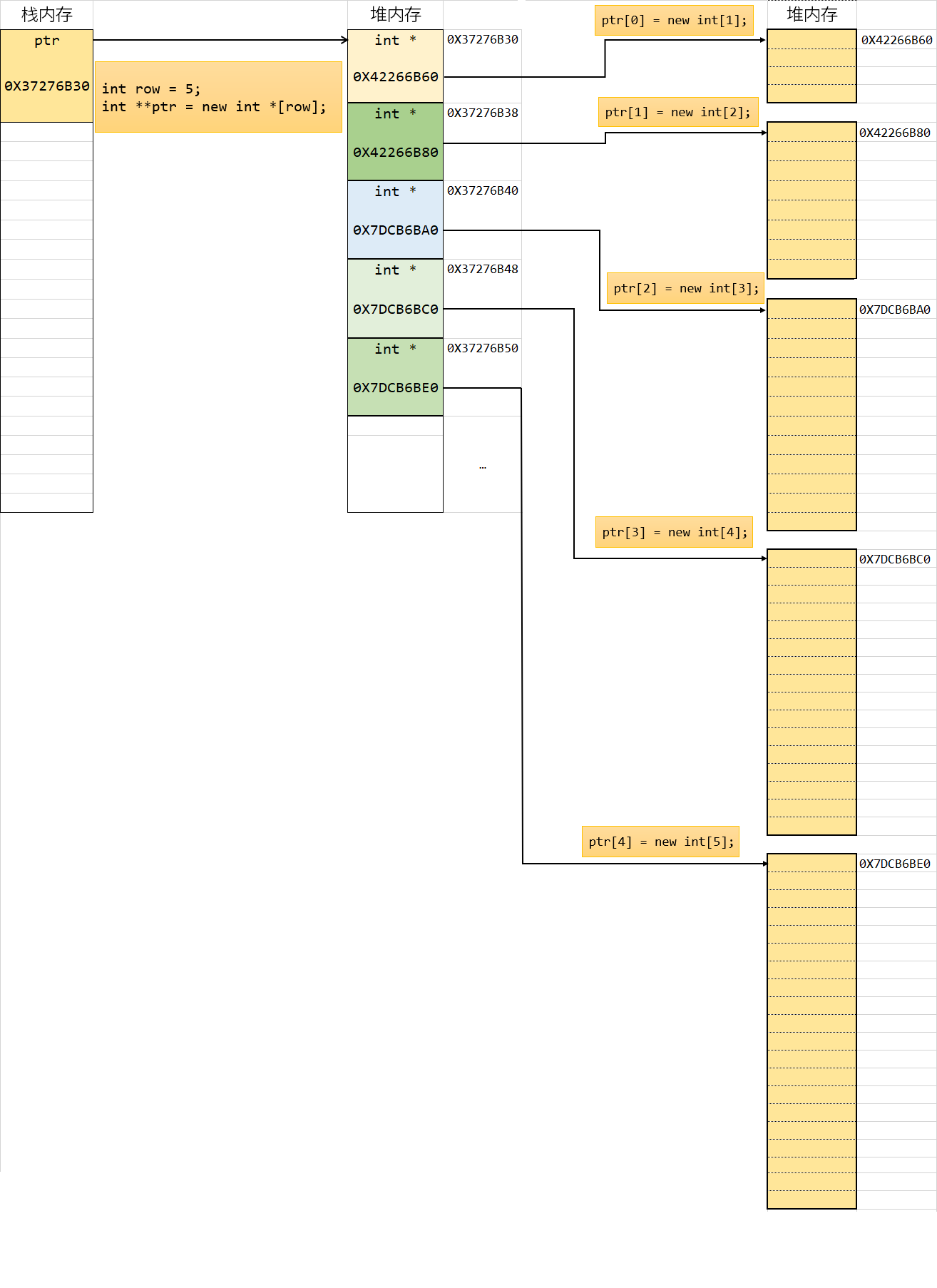 int *ptr[5]表示声明一个数组ptr,数组元素类型为int *int (*ptr)[5]表示声明一个指针ptr,指向的是元素个数为5的一个int型数组