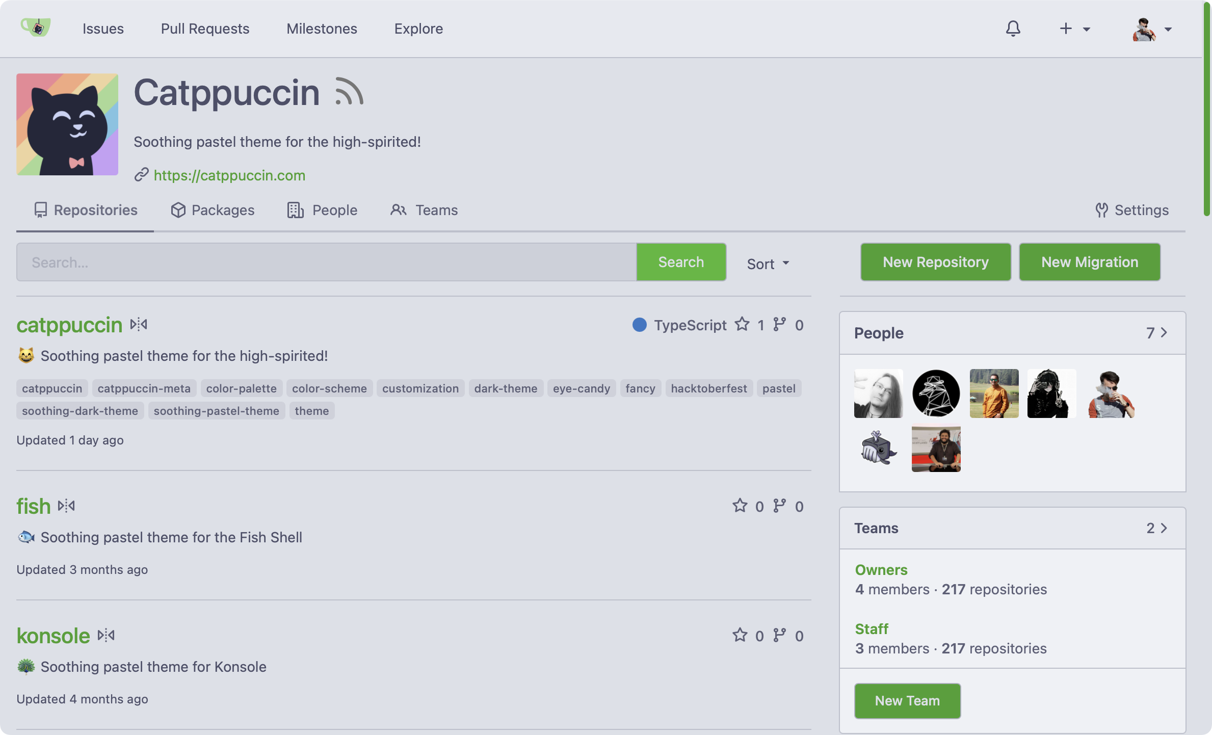 - Select the theme in Gitea > Account > Settings > Appearance.