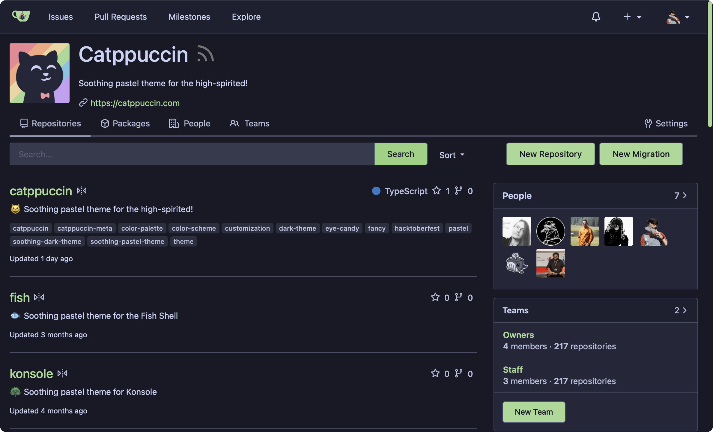 - Select the theme in Gitea > Account > Settings > Appearance.