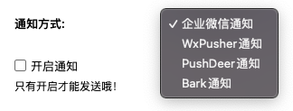 * [x] 支持多种通知方式,企业微信,wxPusher,pushdeer,bark
