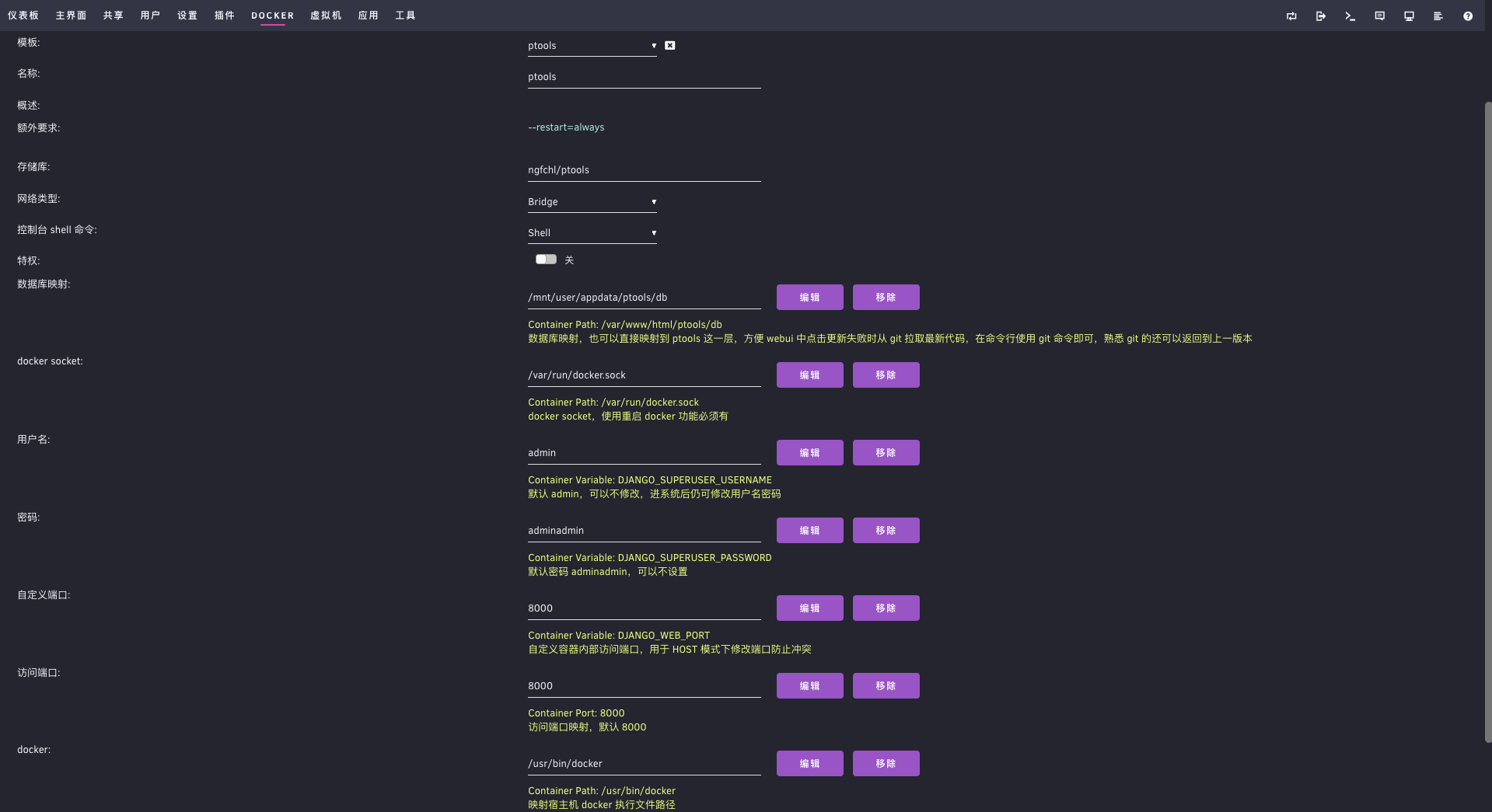 * [x] web界面操作容器重启