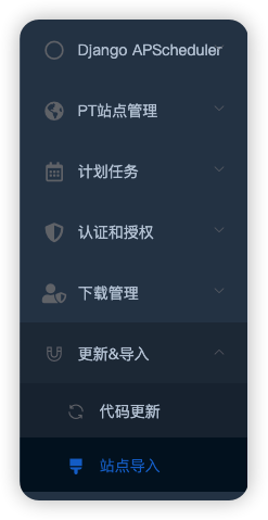 5. 在左侧菜单中选择:更新与导入=>站点导入,打开界面